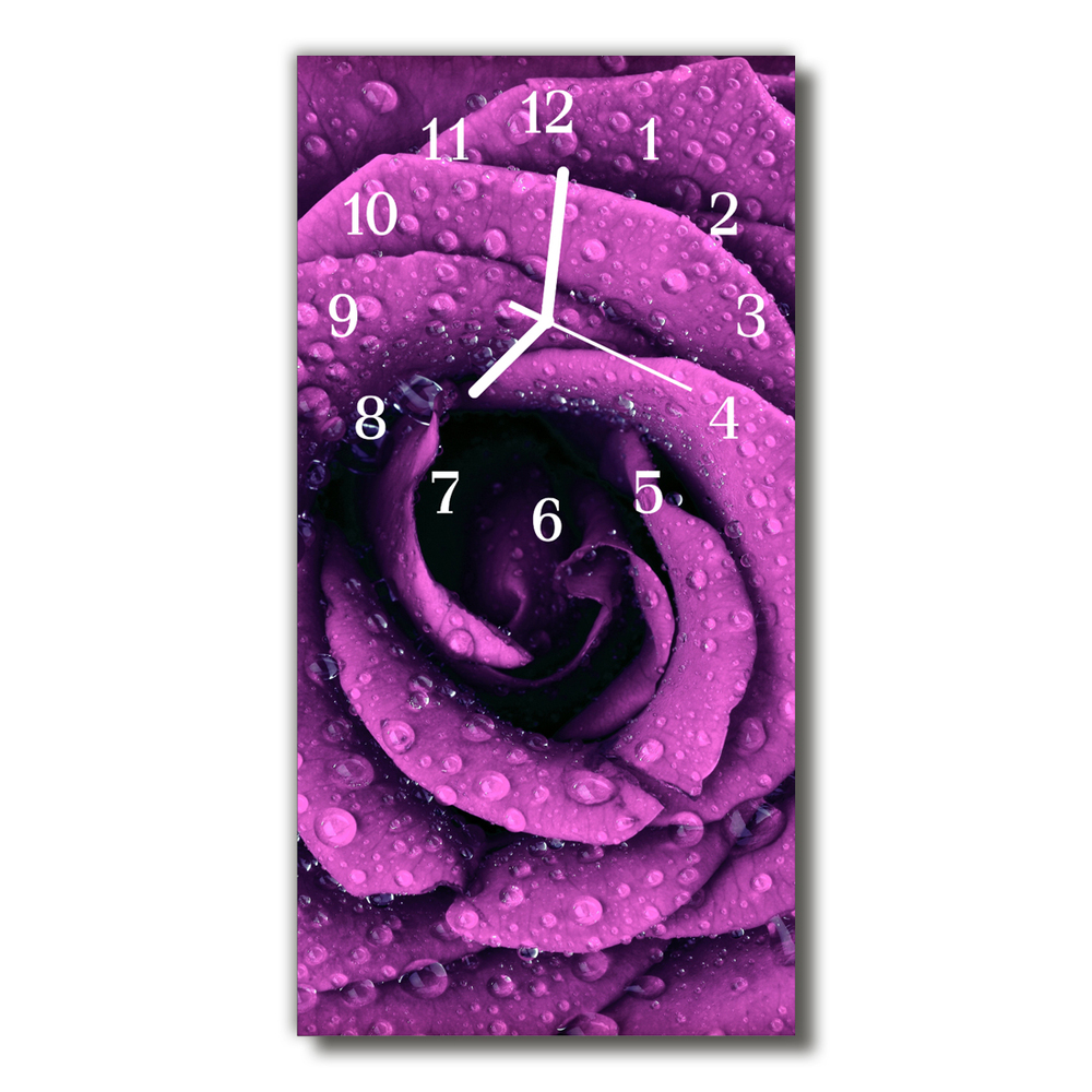 Sklenené hodiny vertikálne Kvety ružové fialové kvapky