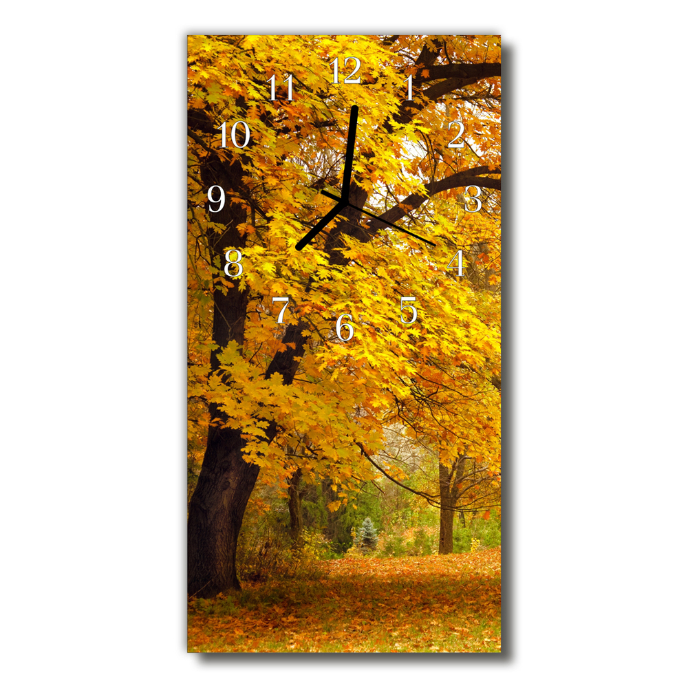 Skleněné hodiny vertikální Příroda, strom, podzim, les, zlato