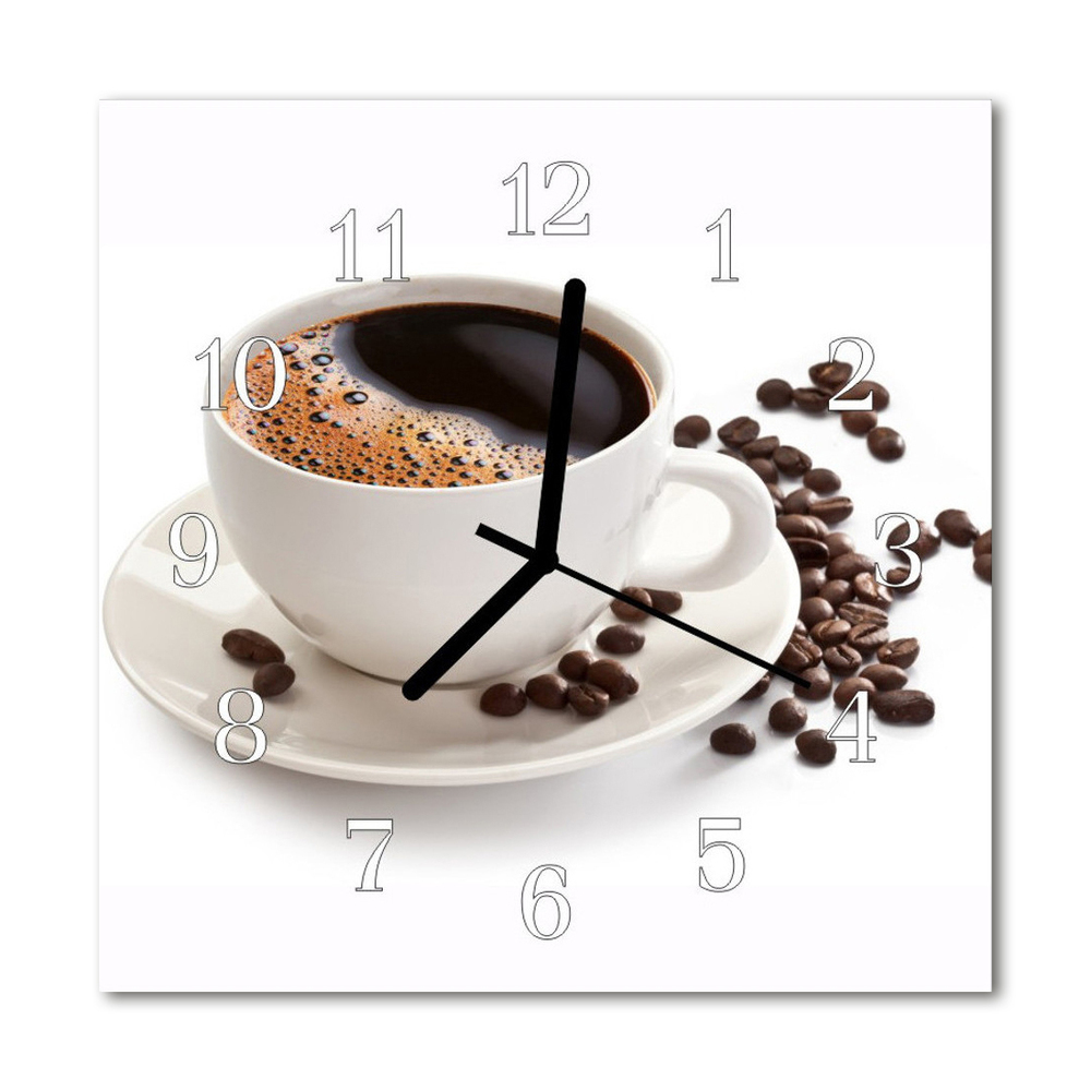 Skleněné hodiny čtvercové Šálek kávy 30x30 cm