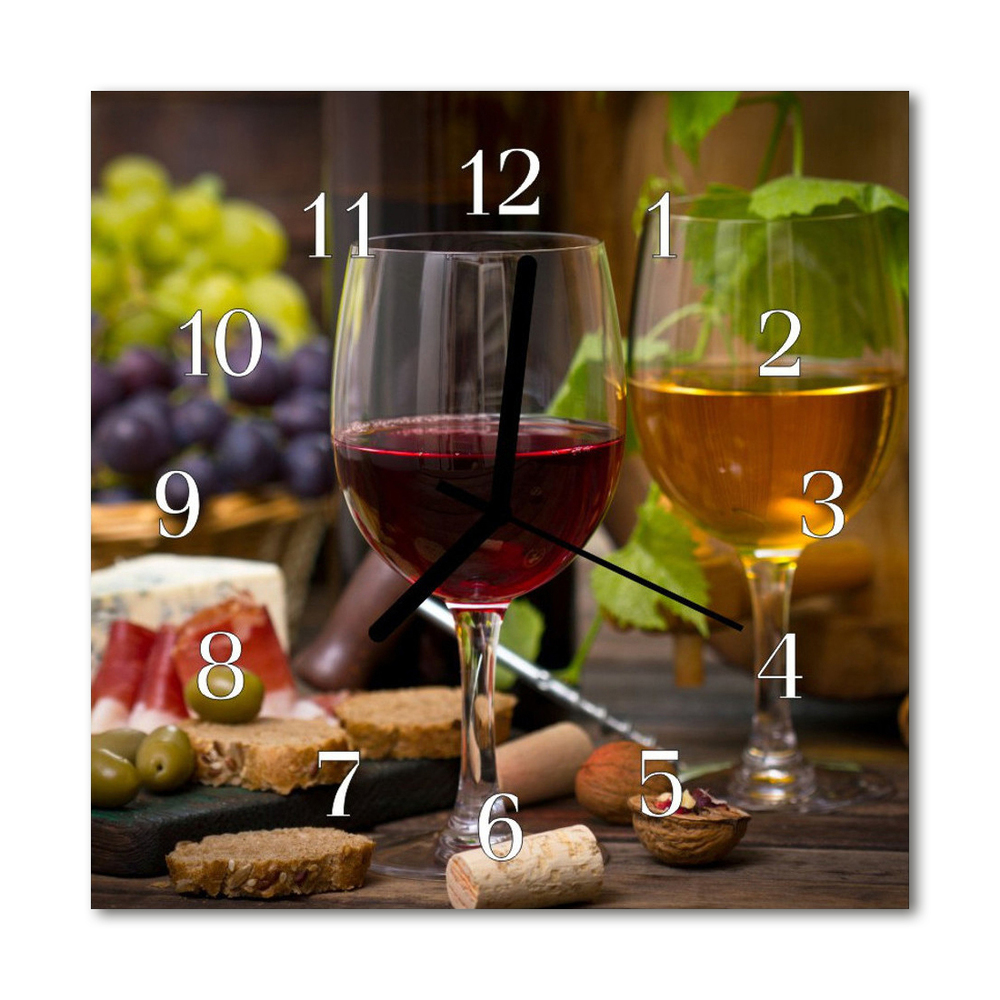 Skleněné hodiny čtvercové Sklenice na víno 30x30 cm