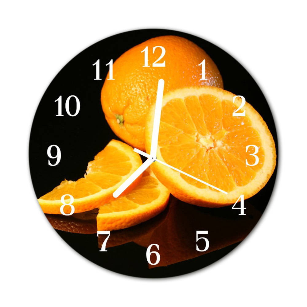 Nástenné skleněné hodiny pomeranče fi 30 cm