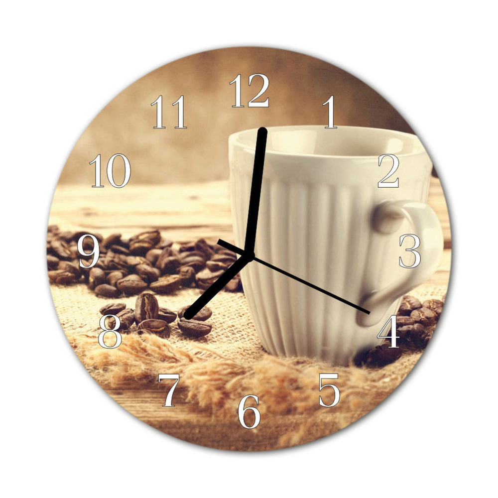 Nástenné skleněné hodiny káva fi 30 cm