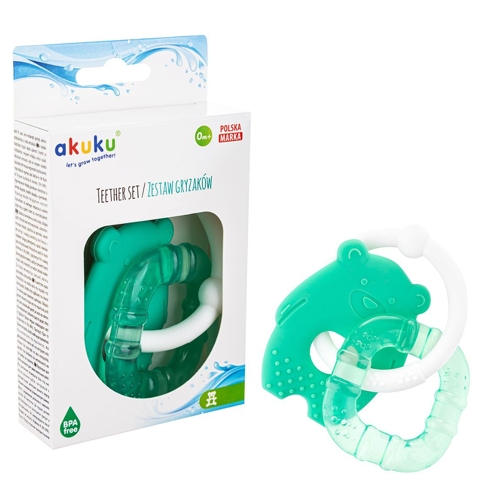 Akuku gryzak wodny + silikonowy na ząbkowanie miętowe