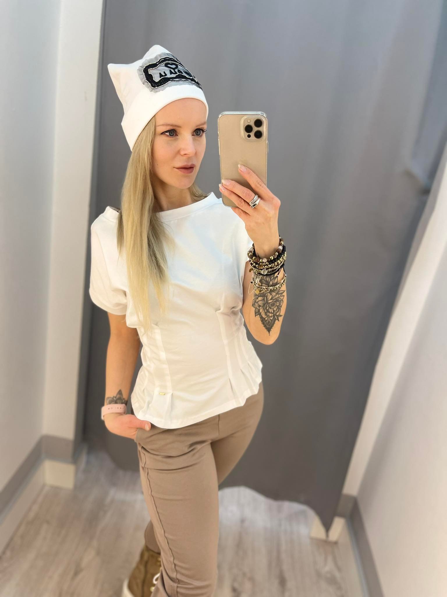 BY O LA LA...! TALIOWANA BLUZKA Z ZASZEWKAMI ECRU