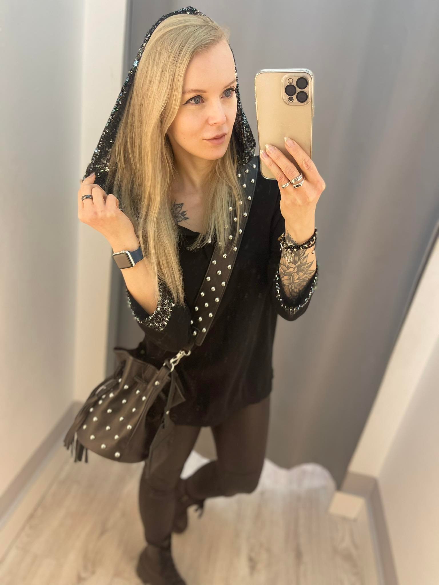 BY O LA LA...! BLUZKA BASIC Z CEKINAMI CZERŃ/SREBRO