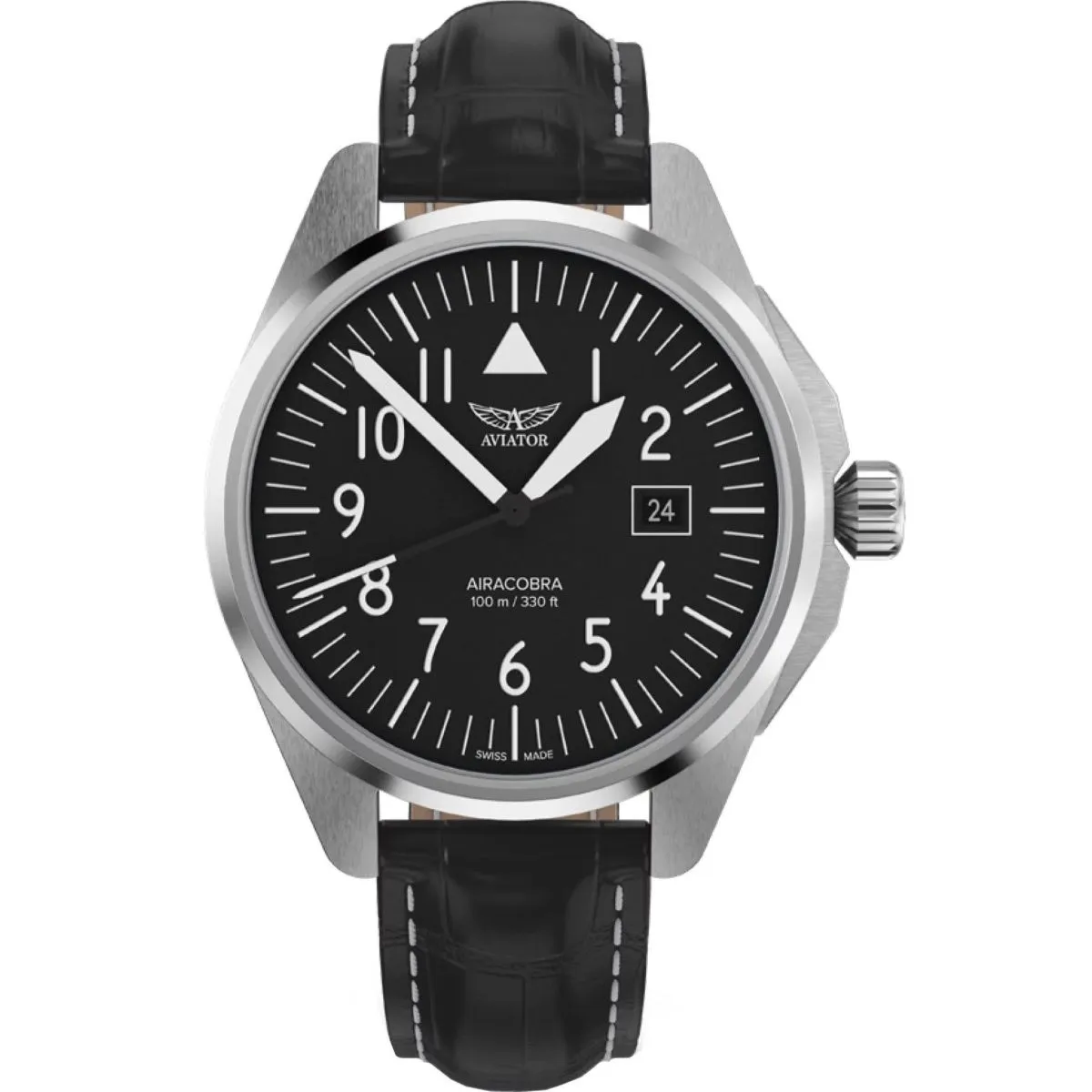 AVIATOR Zegarek Męski Aviator Swiss Made V.1.38.0.315.4 Aviator Airacobra 43 Type A srebrny z czarnym paskiem