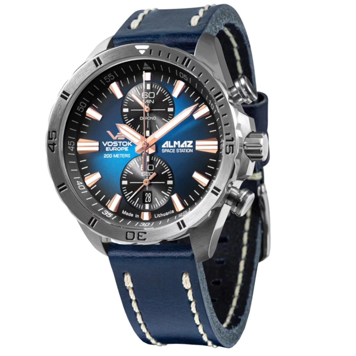 VOSTOK EUROPE Zegarek Męski Vostok Europe Almaz Chrono Space Station granatowy 6S11-320A675