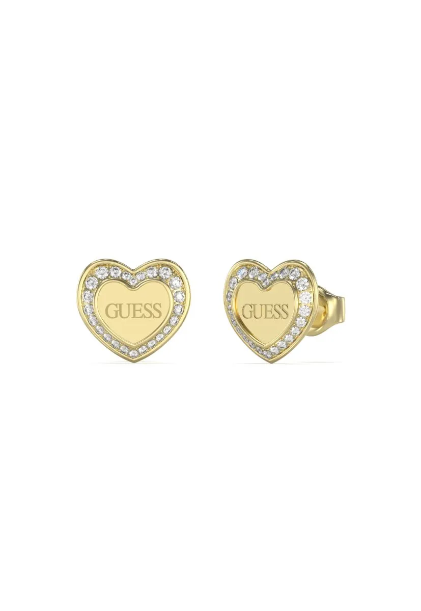 GUESS Złote kolczyki Guess serca z kryształkami AMAMI JUBE04035JW