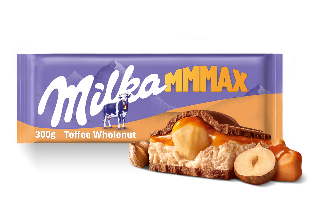 MILKA MMMAX Czekolada mleczna toffee z orzechami laskowymi 300 g