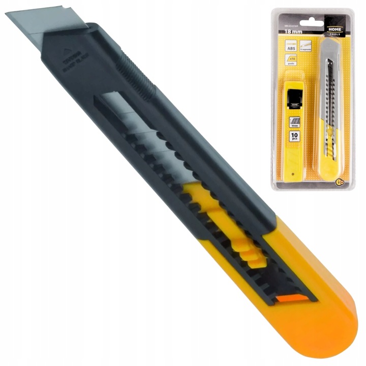 MODECO Nóż nożyk tapeciak z BLOKADĄ do cięcia 1SZT + OSTRZA ŁAMANE 18MM 10SZT