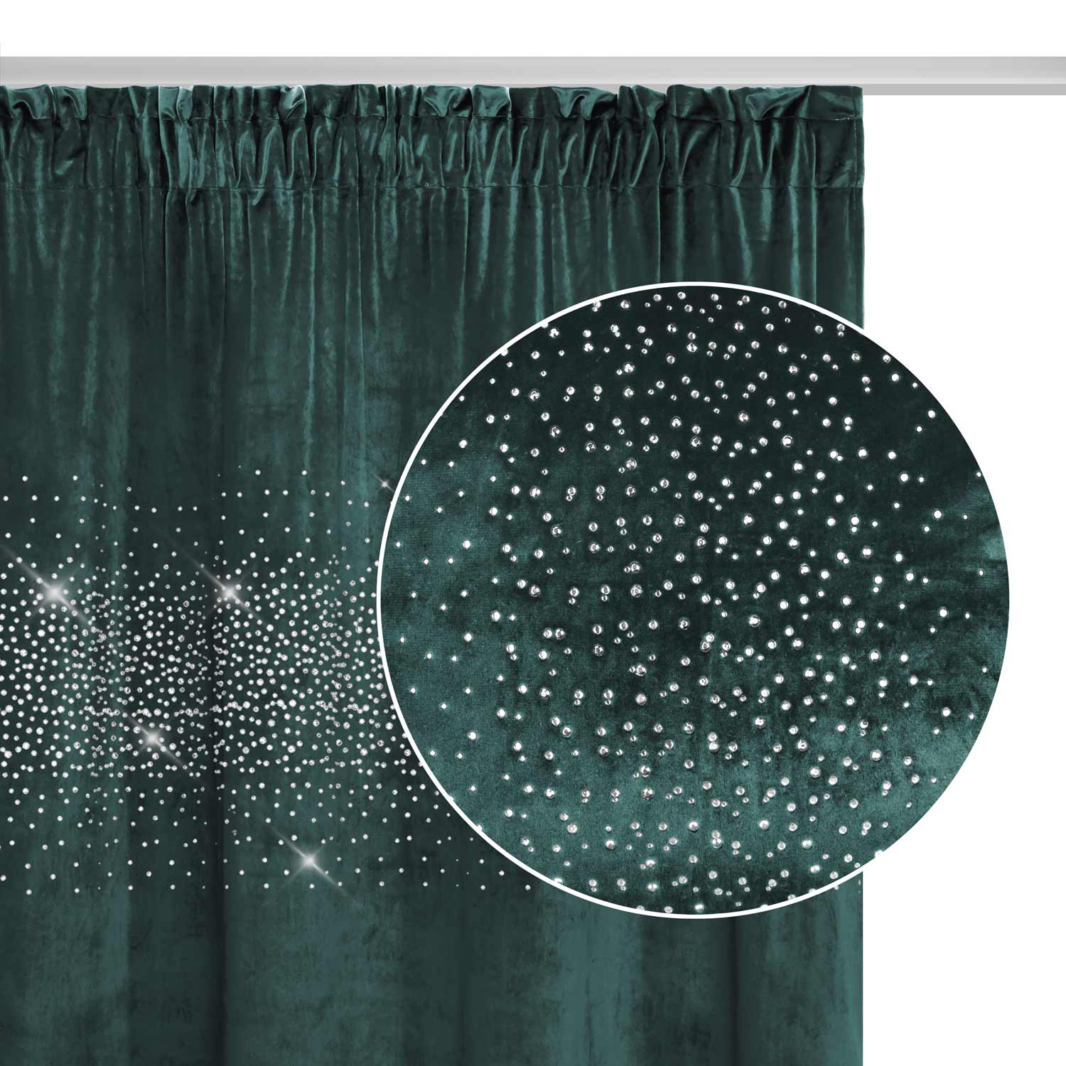 Zasłona gotowa na taśmie Shiny 140x270 welurowa z kryształkami ciemnoturkusowa