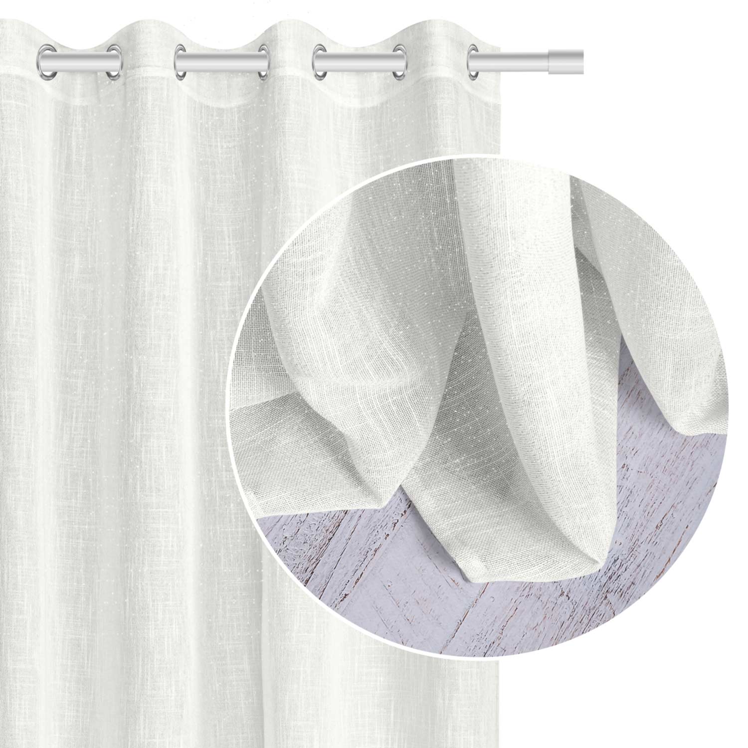 Firana gotowa na przelotkach FROST 140x250 biała ze srebrną nitką