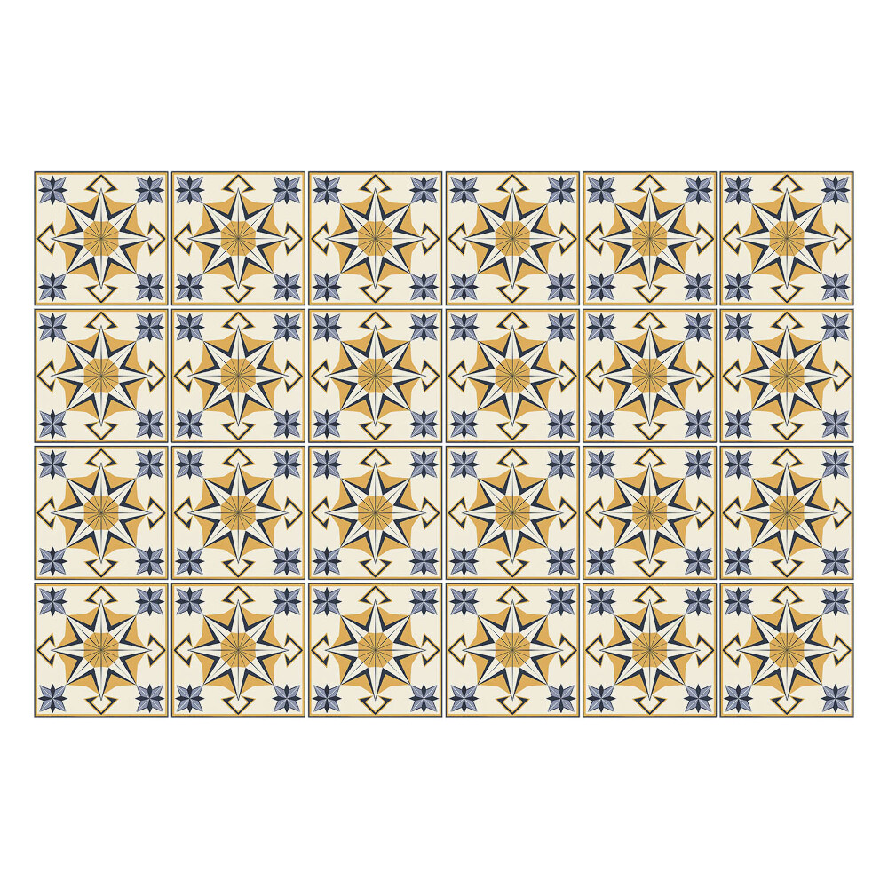 Samolepky na obklady Slnečné hviezdy v kockovanom vzore 24 ks 10x10 cm