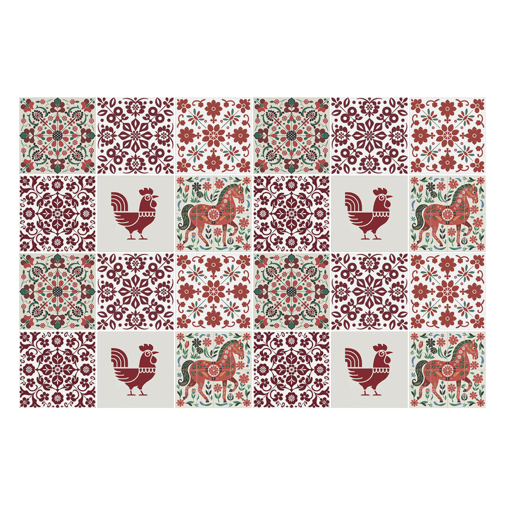 Samolepky na obklady Kurčatá a kone v kvetoch 24 ks 10x10 cm