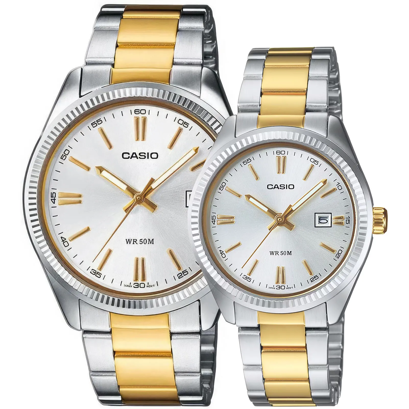 zestaw Casio Classic zegarki dla par zestaw elegancki srebrno-złoty