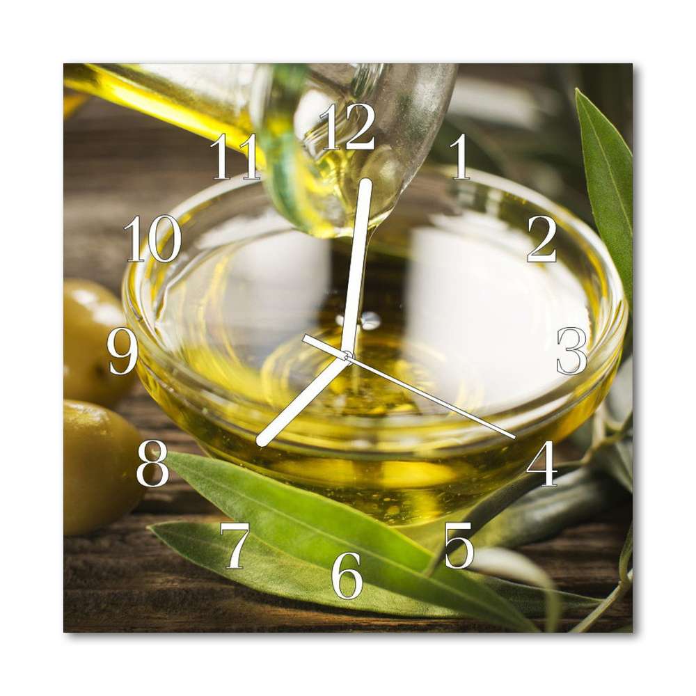 Ceas de perete din sticla pătrat Ulei de măsline Bucătărie Verde 30x30 cm