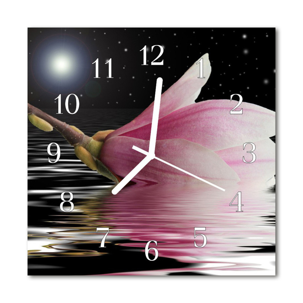 Ceas de perete din sticla pătrat Magnolia Blossom Flori și plante roz 30x30 cm