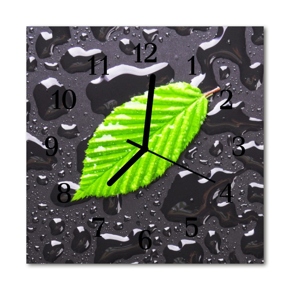 Ceas de perete din sticla pătrat Flori și frunze de plante verzi 30x30 cm