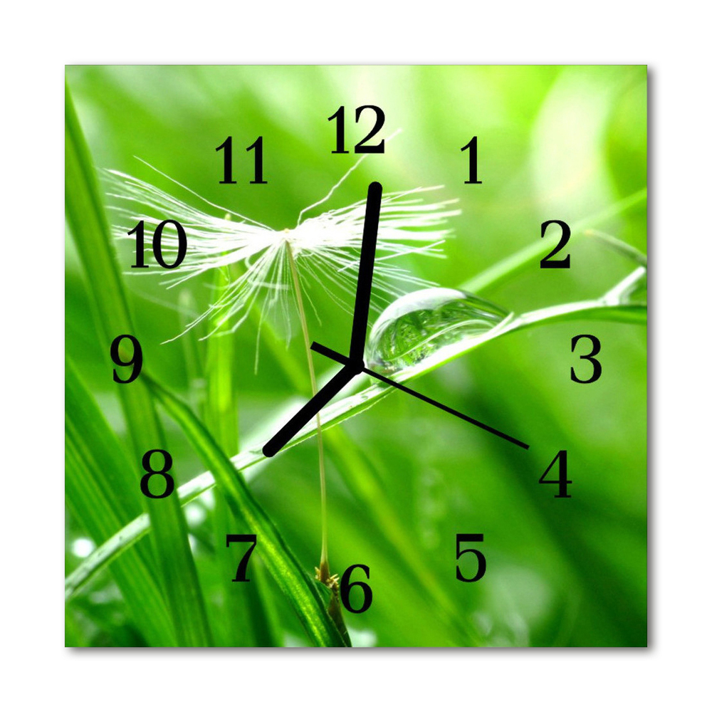 Ceas de perete din sticla pătrat Iarbă Flori și plante verzi 30x30 cm