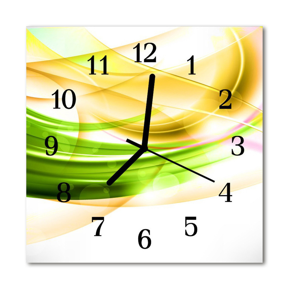 Ceas de perete din sticla pătrat Abstract Art verde, galben 30x30 cm
