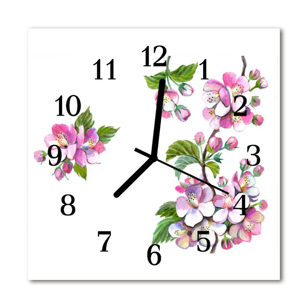 Ceas de perete din sticla pătrat Flori Flori și plante roz 30x30 cm