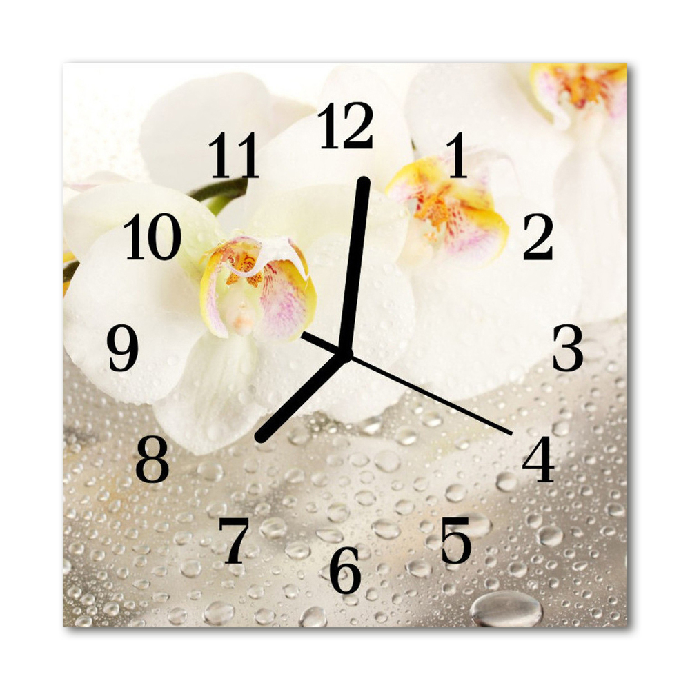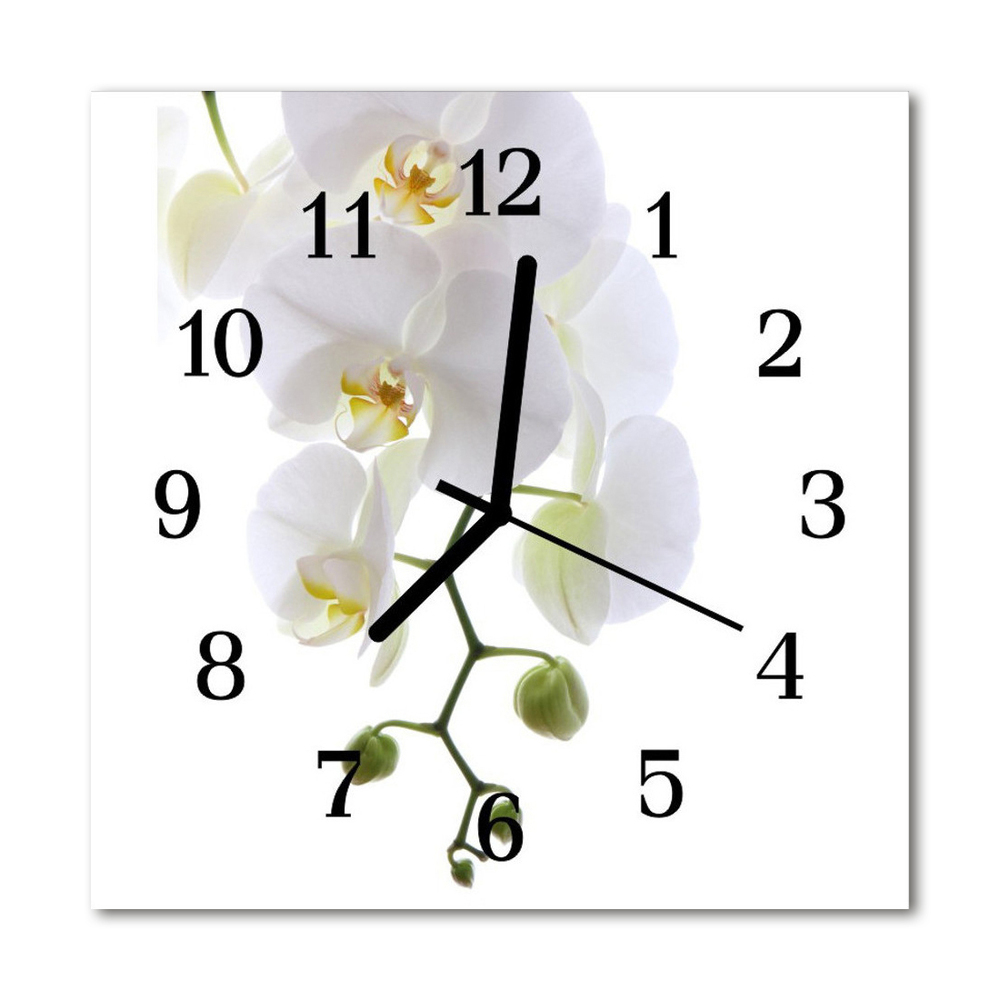 Ceas de perete din sticla pătrat Orhidee flori albe 30x30 cm