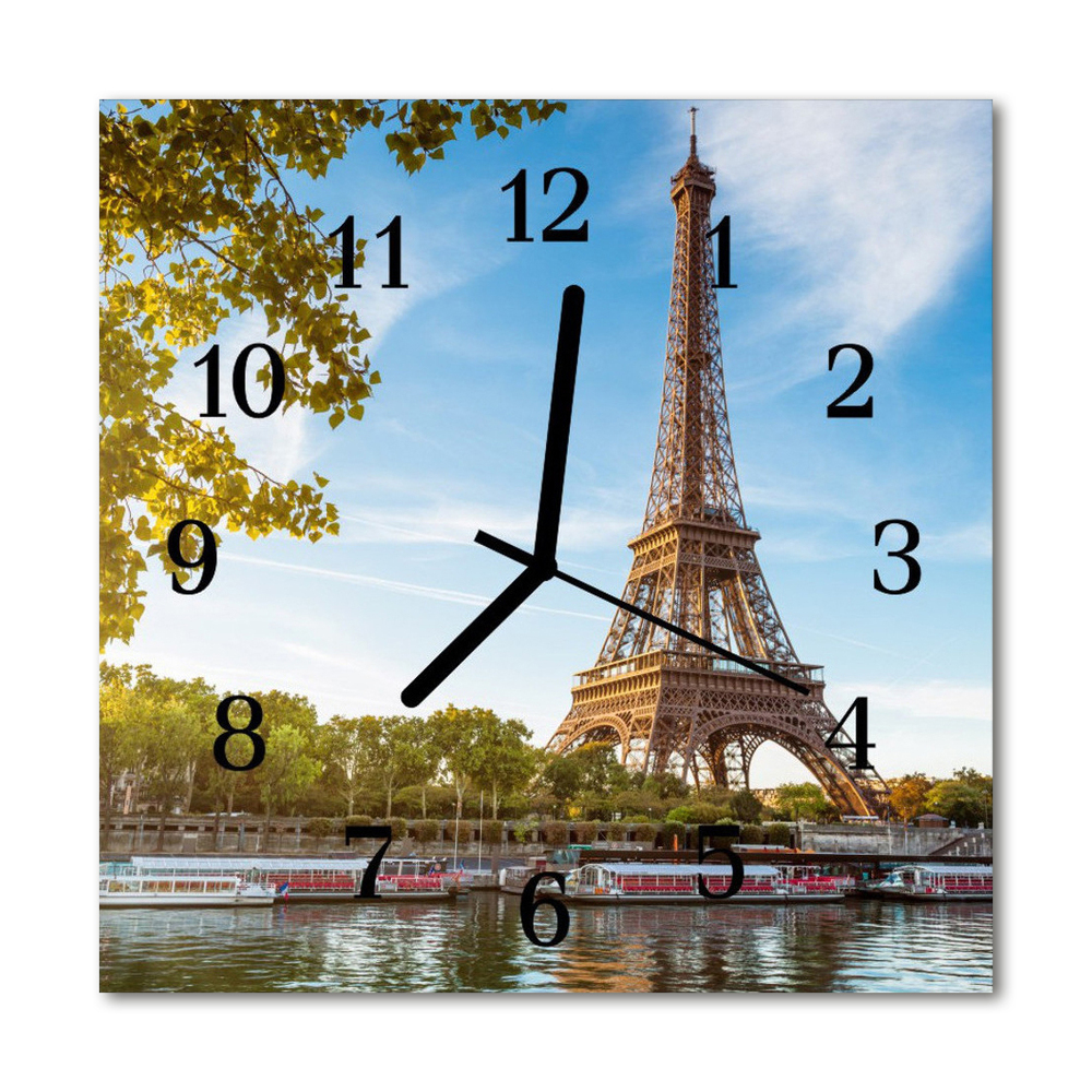 Ceas de perete din sticla pătrat Turnul Eiffel Paris Brown City, Albastru 30x30 cm