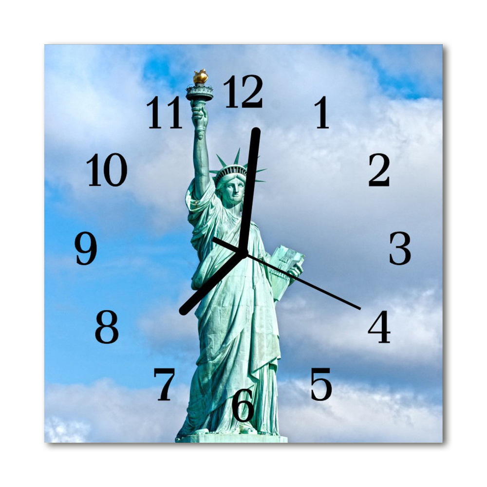 Ceas de perete din sticla pătrat Statuia libertatii Statuia Libertății albastru 30x30 cm