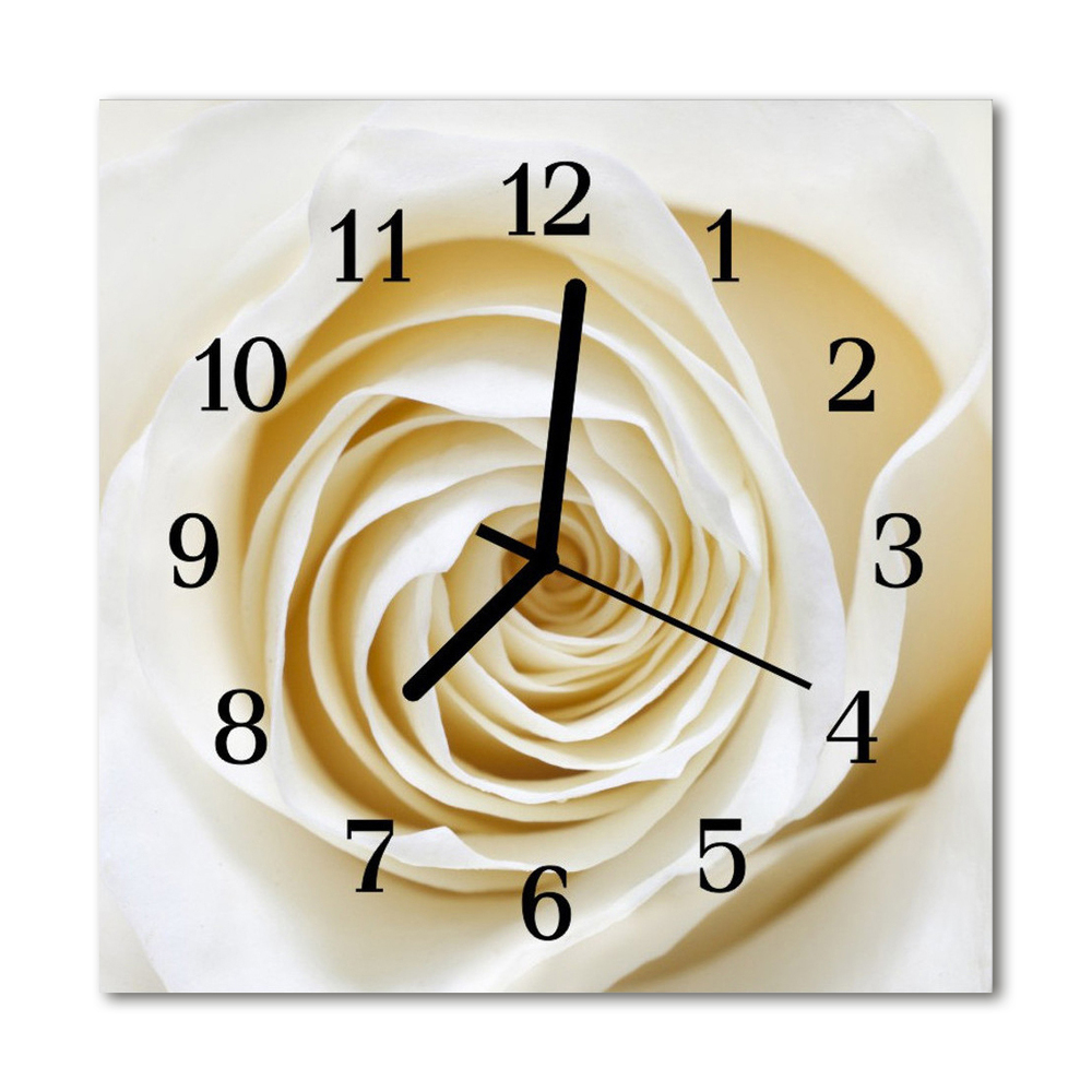 Ceas de perete din sticla pătrat White Rose Flori & Plante alb 30x30 cm