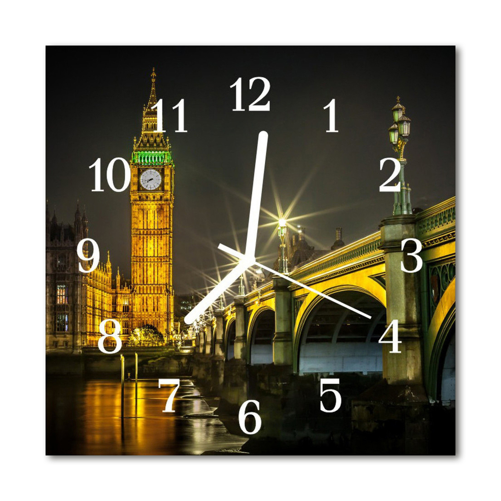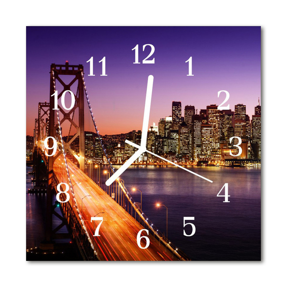 Ceas de perete din sticla pătrat Bridge City Arhitectura orașului Multi-colorat 30x30 cm