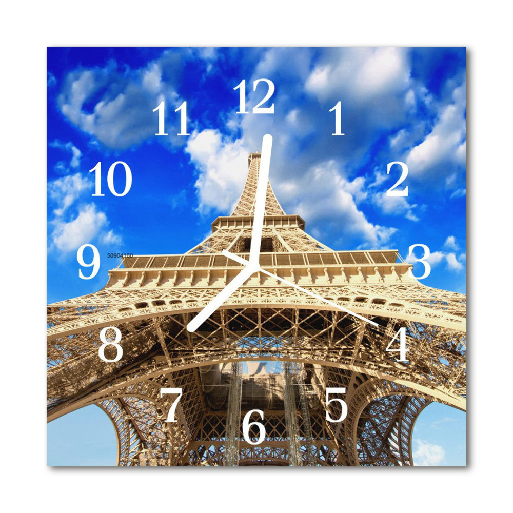 Ceas de perete din sticla pătrat Turnul Eiffel Arhitectura albastru 30x30 cm