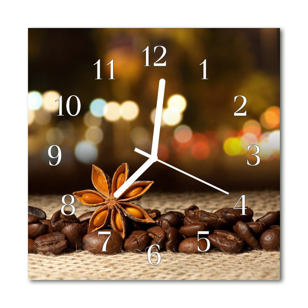 Ceas de perete din sticla pătrat Boabe de cafea Alimente și băuturi Brown 30x30 cm