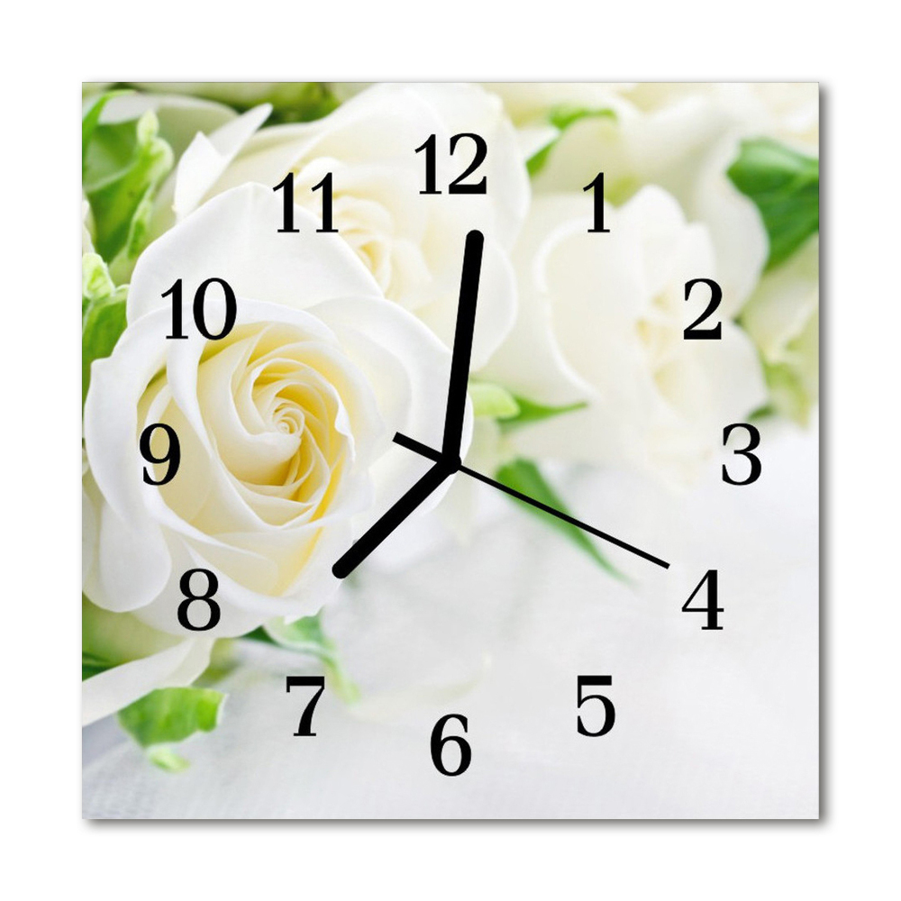 Ceas de perete din sticla pătrat Trandafiri flori albe 30x30 cm