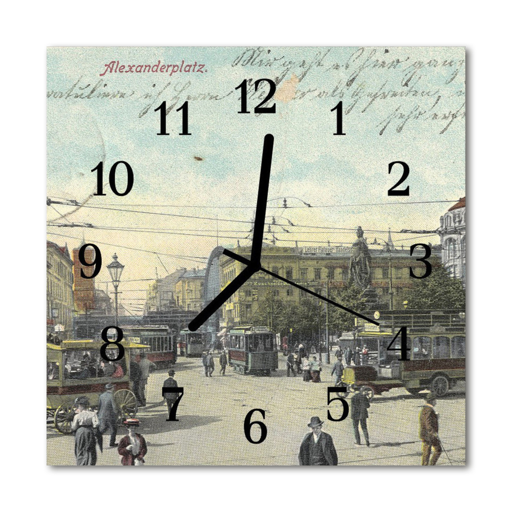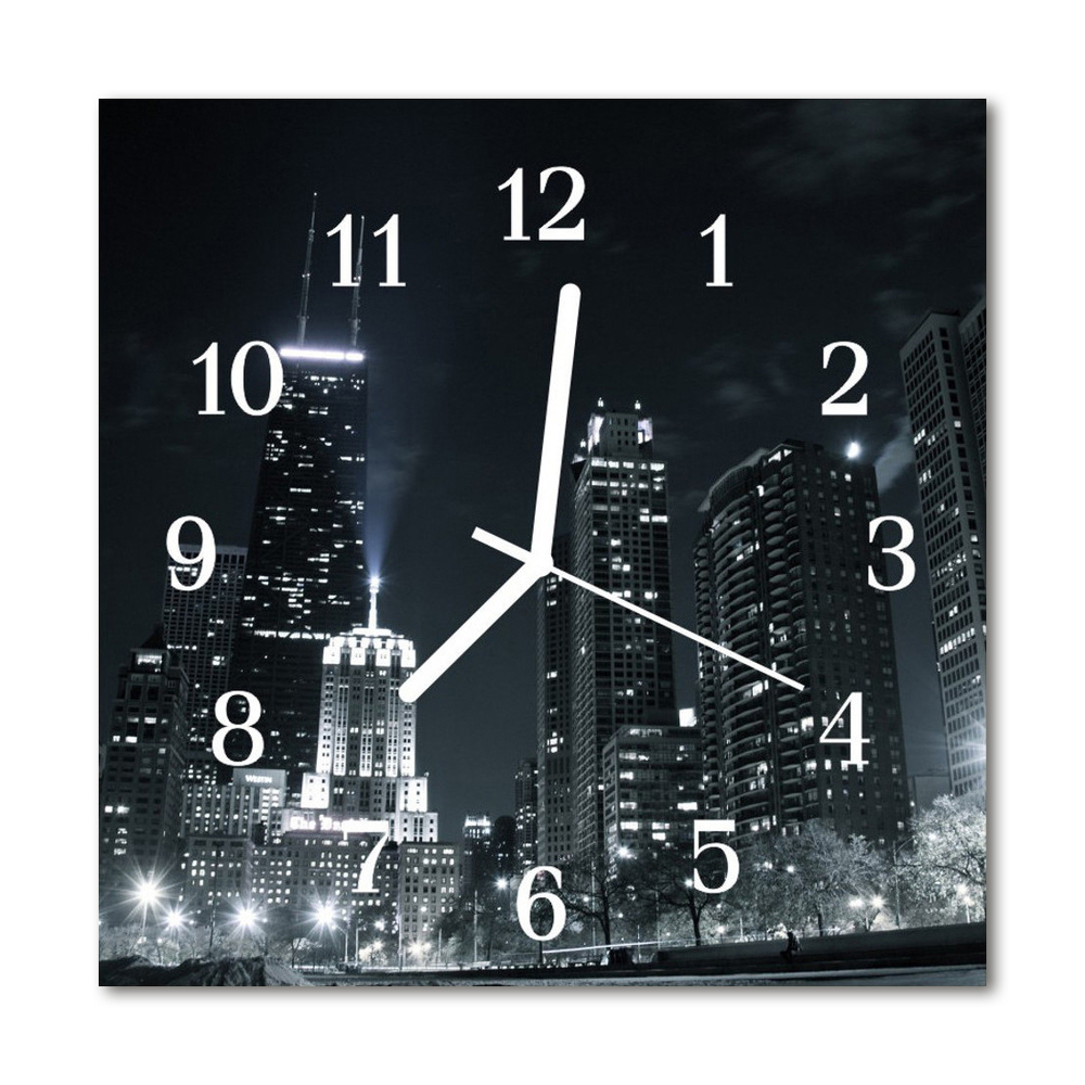 Ceas de perete din sticla pătrat New York Towns multi-colorat 30x30 cm