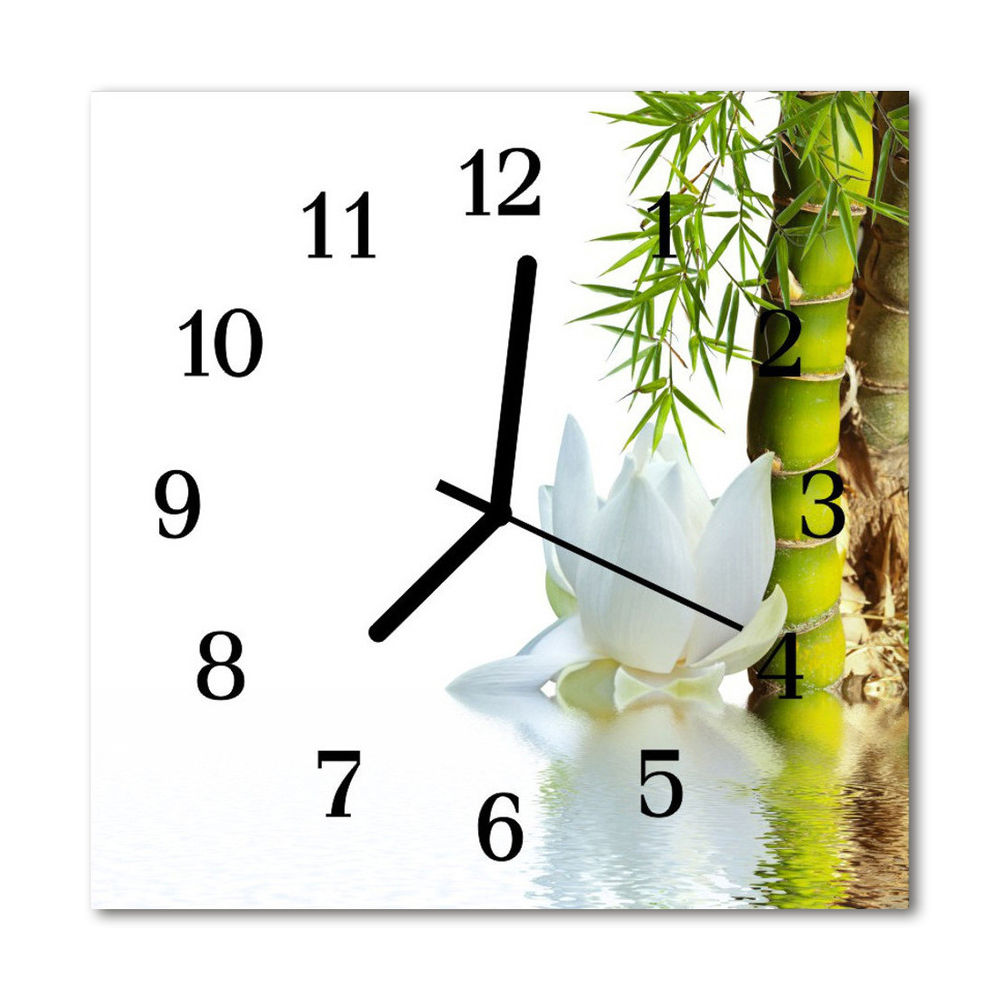 Ceas de perete din sticla pătrat Bambus alb 30x30 cm