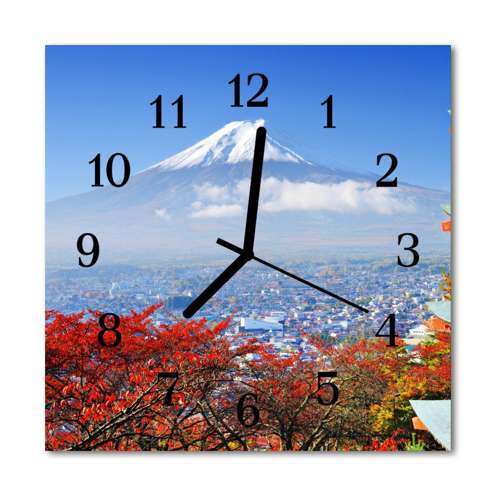 Ceas de perete din sticla pătrat Peisaj montan multicolor 30x30 cm