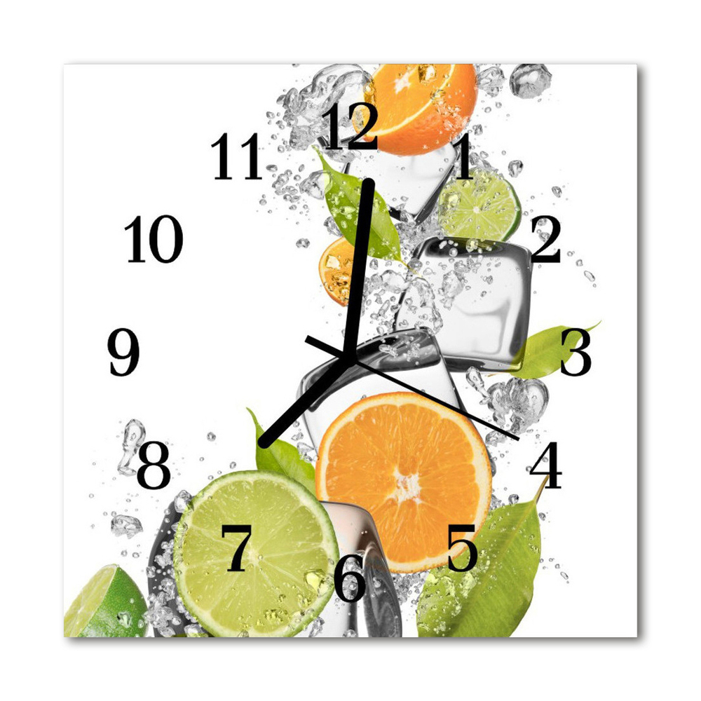 Ceas de perete din sticla pătrat Fructe citrice fructe Multi-colorat 30x30 cm