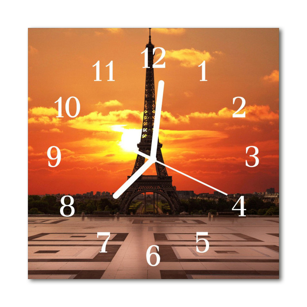 Ceas de perete din sticla pătrat Turnul Eiffel Arhitectura Orange 30x30 cm