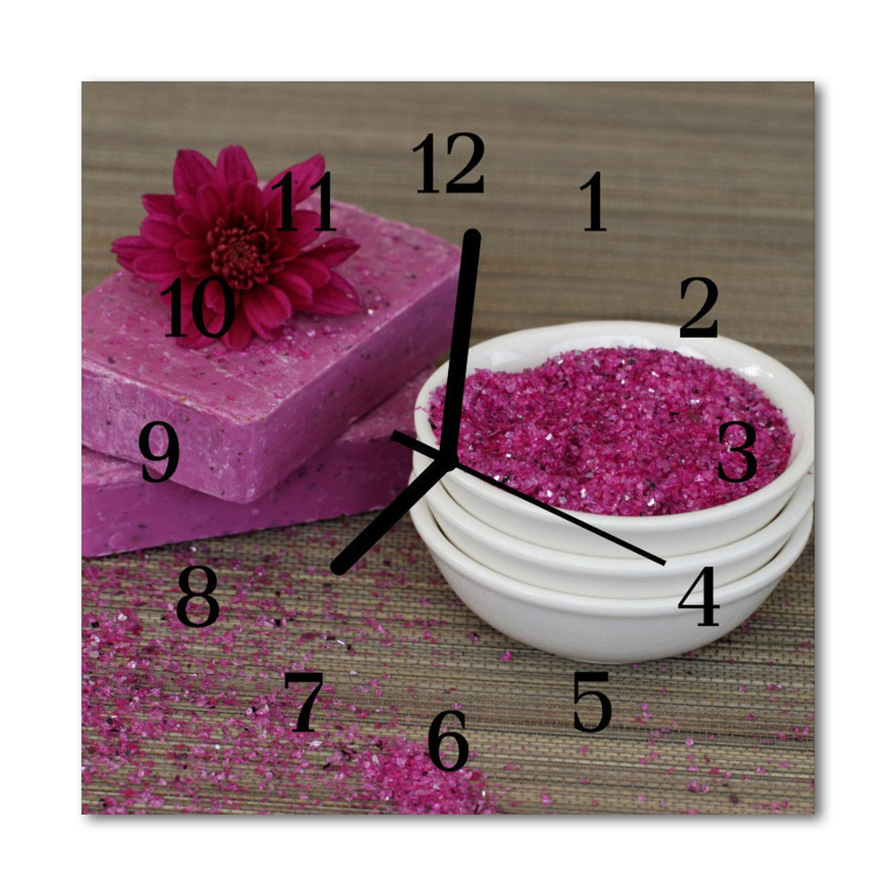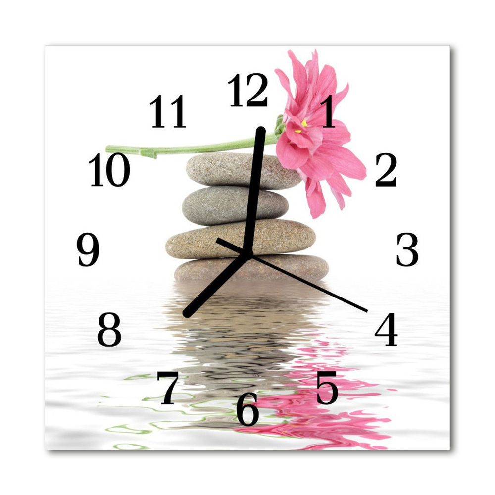 Ceas de perete din sticla pătrat Floare floare roz 30x30 cm