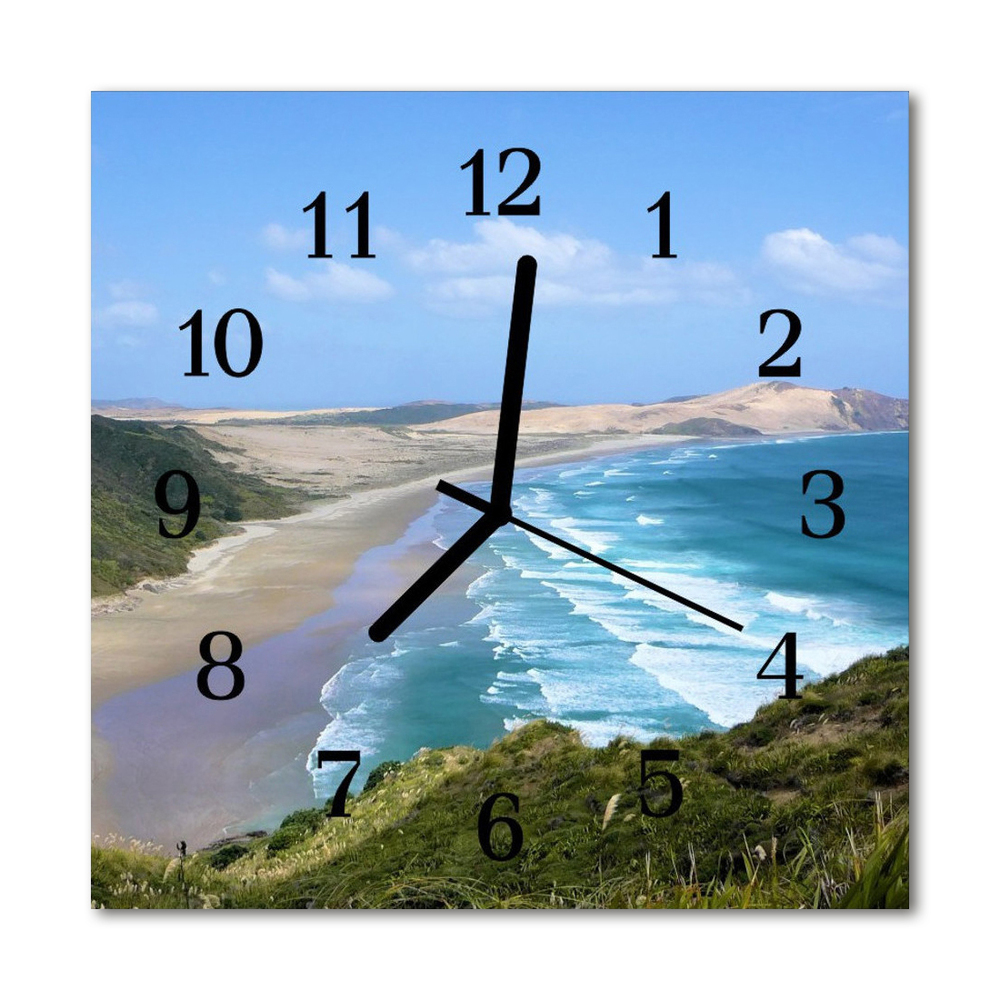 Ceas de perete din sticla pătrat Coast Peisaj albastru 30x30 cm
