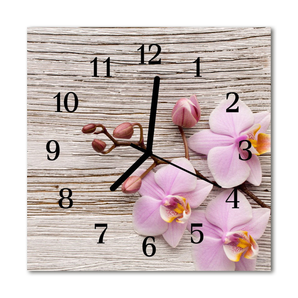Ceas de perete din sticla pătrat Orhideea flori violet 30x30 cm