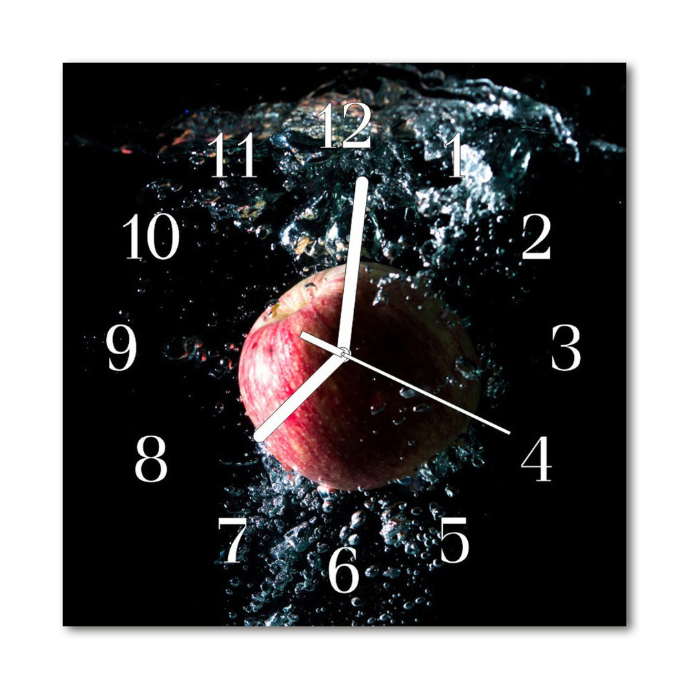 Ceas de perete din sticla pătrat Apple a consumului de fructe negru 30x30 cm