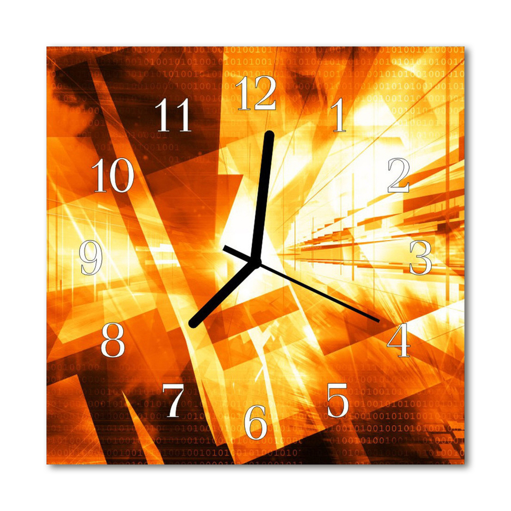 Ceas de perete din sticla pătrat Abstract Art Orange 30x30 cm