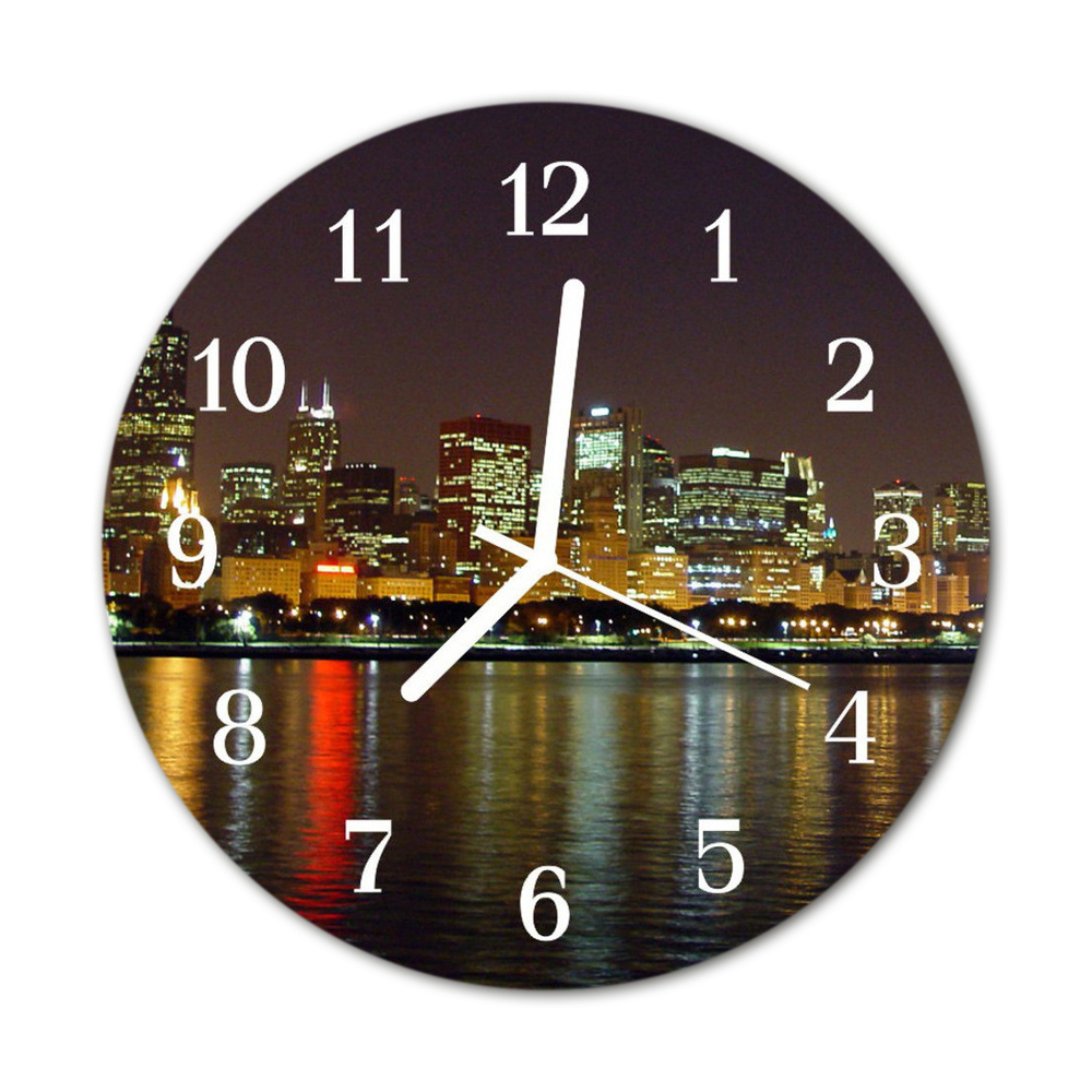 Ceas de perete din sticla rotund Skyline orașului Multi-colorat fi 30 cm