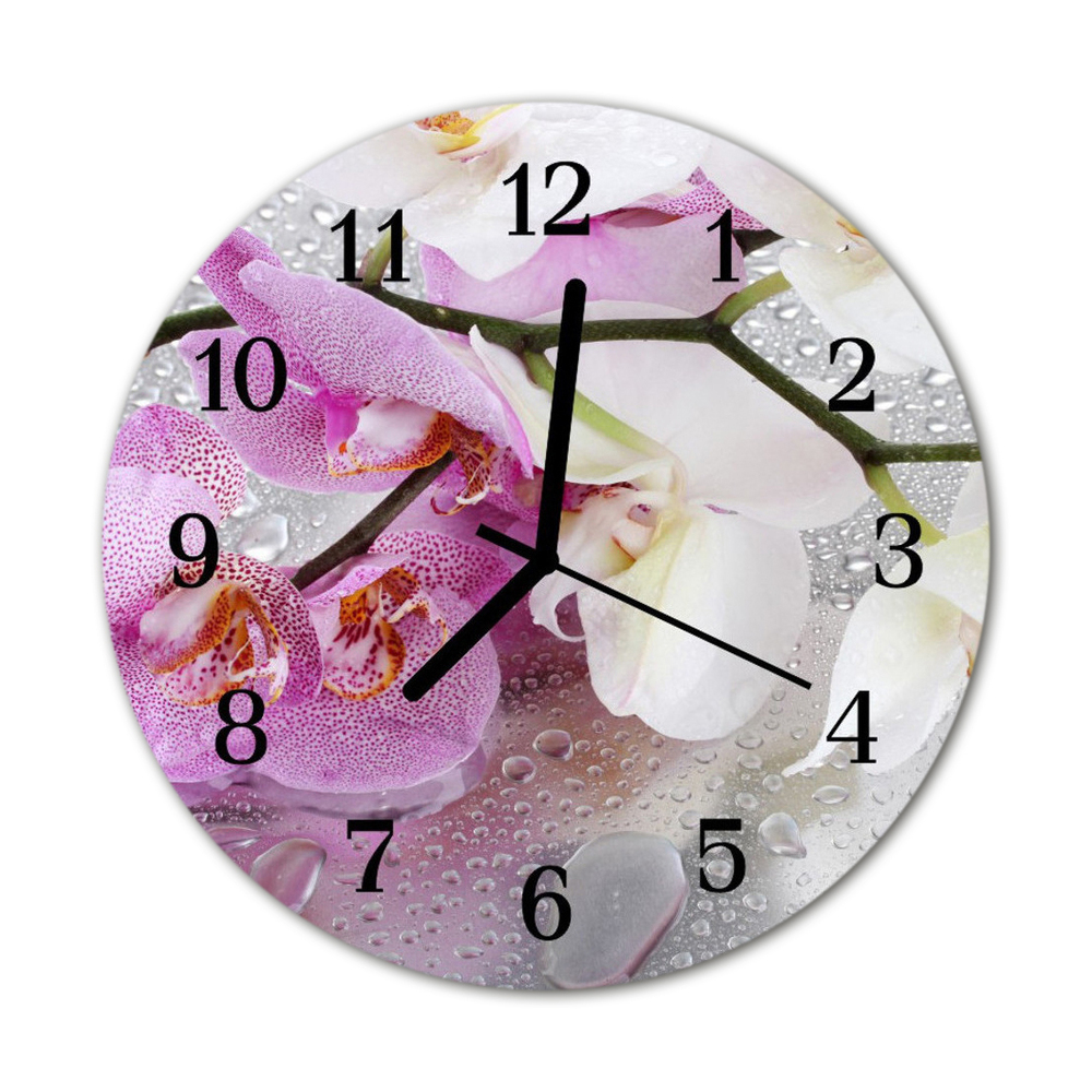 Ceas de perete din sticla rotund Orchid Flori și plante roz fi 30 cm Negru