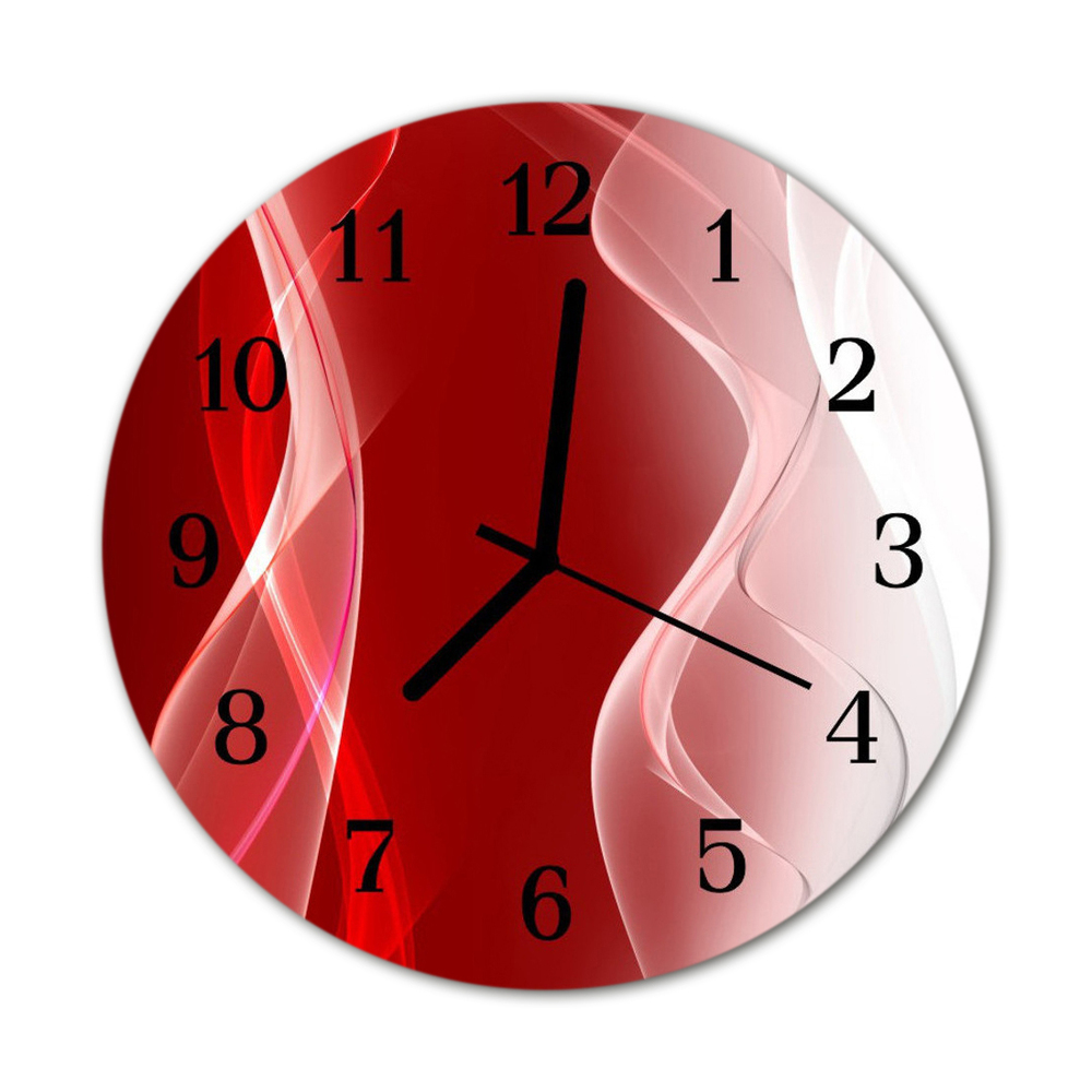 Ceas de perete din sticla rotund Abstract Lines Art Rosu, Negru fi 30 cm