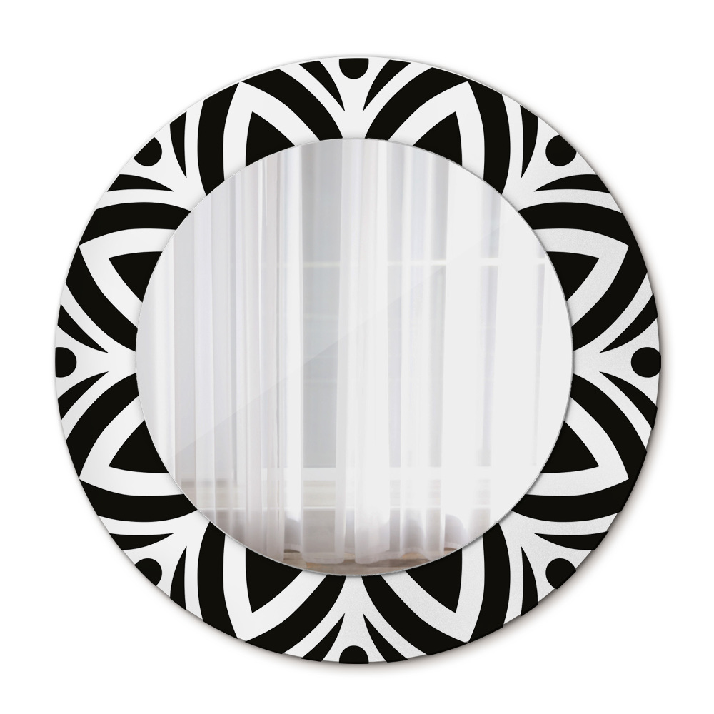 Oglinda rotunda cu rama imprimata Ornament geometric negru fi 50 cm