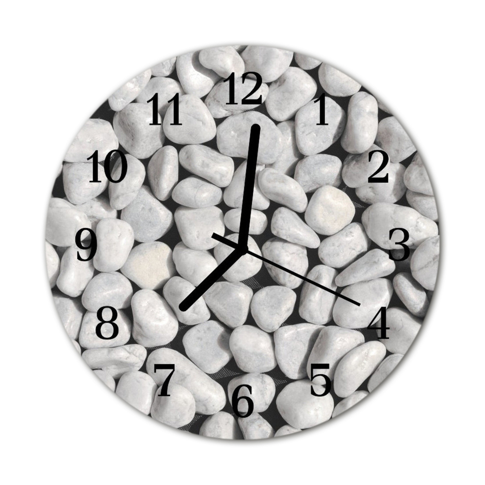 Ceas de perete din sticla rotund Pietre pietre albe fi 30 cm Negru