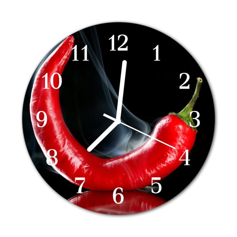 Ceas de perete din sticla rotund Chili Pepper Chili Pepper Red fi 30 cm