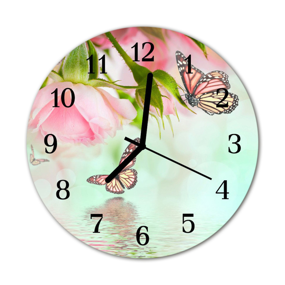 Ceas de perete din sticla rotund Fluturi Animale roz fi 30 cm Negru